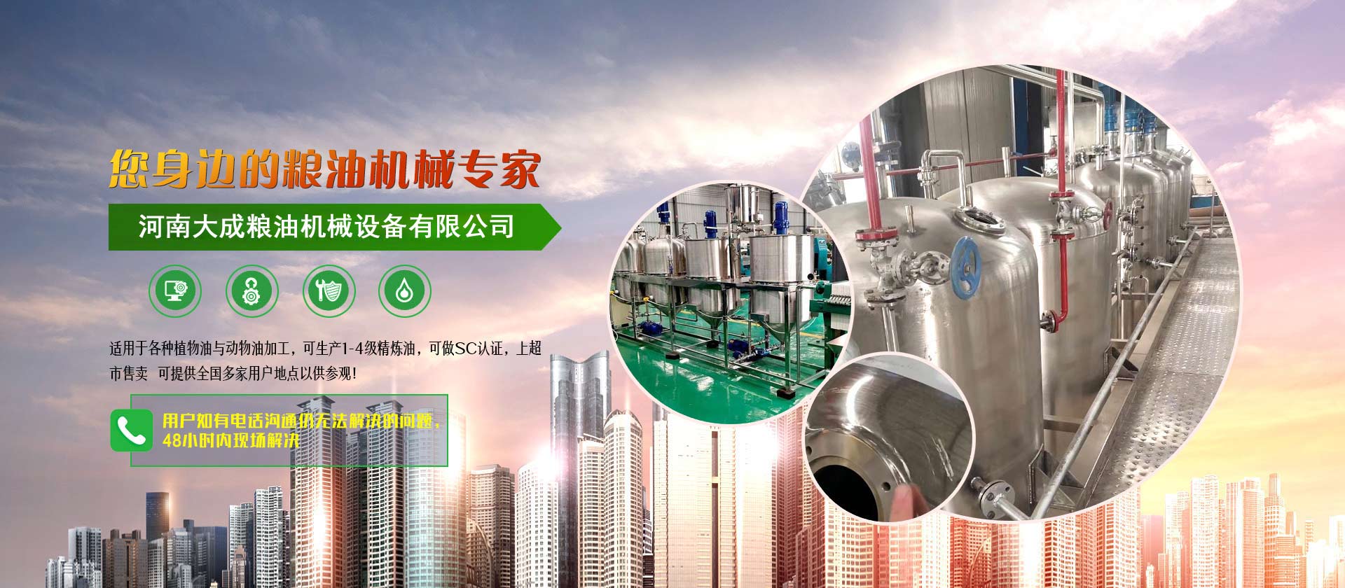 食用油精煉設備_油脂浸出設備_榨油機全套設備--河南大成機械設備有限公司是專業從事油脂精煉設備、油脂浸出設備、榨油設備等各類型油脂加工設備研制與生產的高新技術企業。